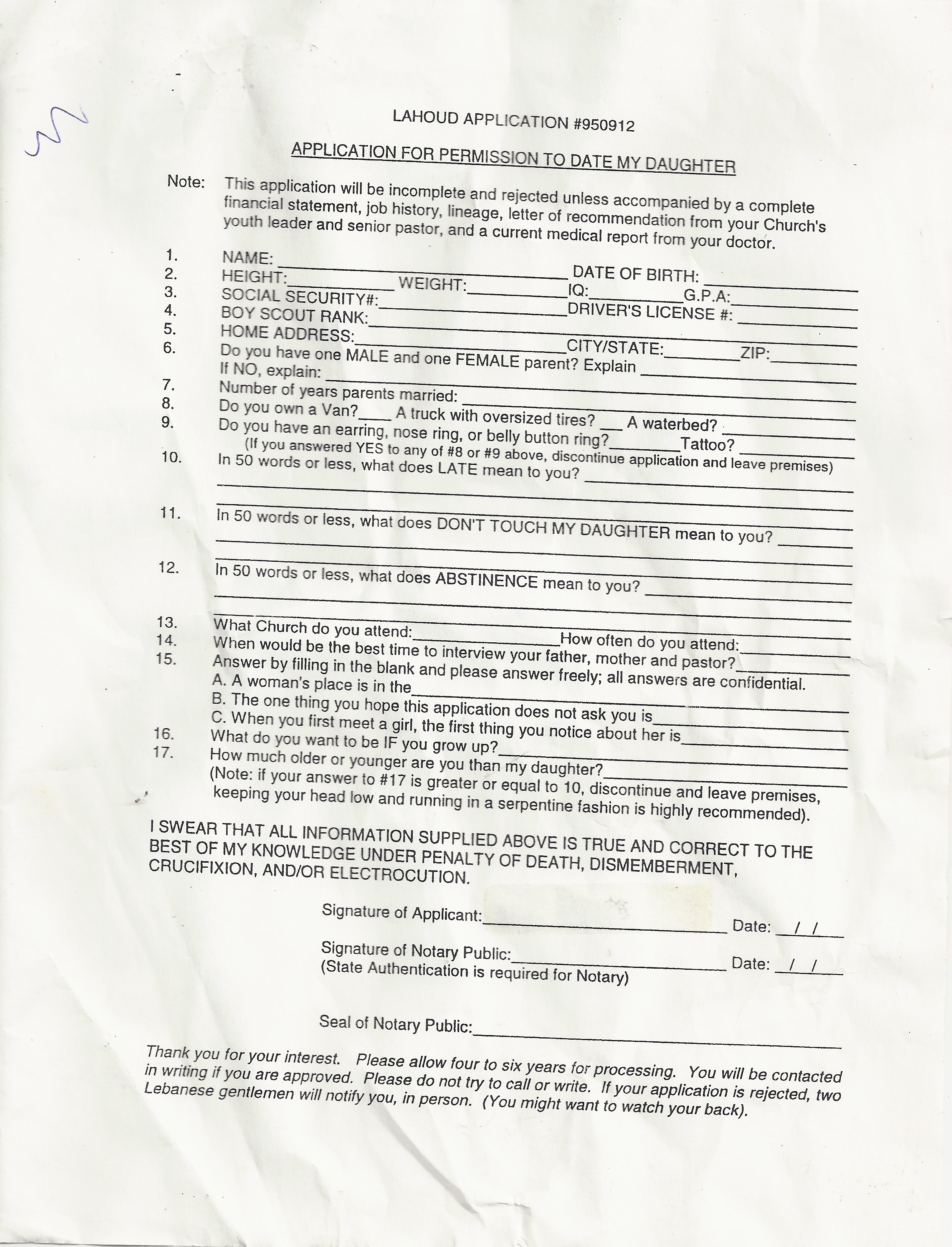 As a side note, I was cleaning one of my packed drawers a few days ago and ran into a very old, yet still valid, Lahoud Dating Application that I had made when boys started showing interest in Wadad and Jeanette (ya yes a long time ago). I am attaching it for your enjoyment and use … I am sure that Jad will use it “as-is” for Joya, especially that it already has the Lahoud name on it. 🙂